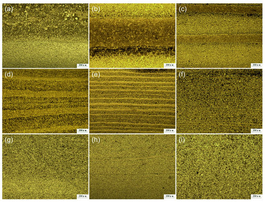 Continuous microstructural evolution of group 3, 200 magnification: (a) smelting; (b–i) forge welding 1–8 times.