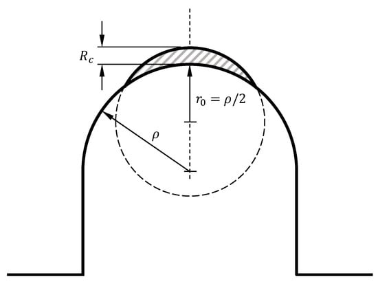 where is the range of the mode I notch stress intensity factor and is a geometrical parameter that depends on the opening angle of the notch and Poisson’s ratio [38]. is William’s eigenvalue, equal to 0.5 for a U-notch [59,60]. The material parameter is the radius of the control volume surrounding the notch, as illustrated in Figure 5, and is calculated using