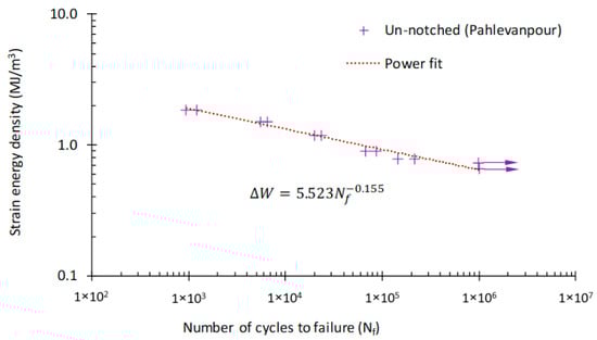 Energy–life curve for unnotched specimens [34]. Reproduced from [34], with permission from Elsevier, 2020.