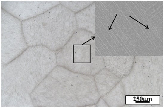 The chemical composition of TC21 alloy is presented in Table 1. In the present study, a dilatometer (DIL-805 A/D, Bahr, Oslo, Norway) was applied to measure β-transus temperature (Tβ), and a temperature of 955 °C was obtained in this regard. Then an appropriated heat treatment process was selected accordingly. Figure 1 illustrates a typical morphology of TC21 alloy with a lamellar microstructure, which was obtained through the solution treatment at 1050 °C for 1 h, followed by a rapid water quenching (WQ).
