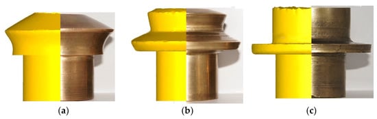 Therefore, the most effective ways of obtaining such parts are the methods of volumetric shaping, such as traditional upsetting, rotary forging, orbital forging, radial extrusion, and axial rotary forging, allowing parts to be obtained with sufficient accuracy, practically without the loss of any material [7,8,9].