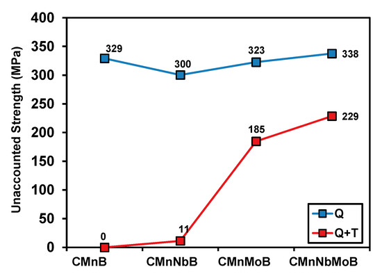 Contribution of unaccounted strength to the yield strength for both Q and Q + T conditions.