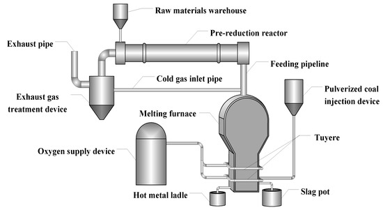 At present, the ironmaking process in the world is mainly based on the blast furnace (BF). Numerous institutions have focused on how to reduce energy consumption and the environmental pollution of blast furnaces. Many studies from around the world have identified that some commercially available energy-efficiency technologies such as pulverized coal injection (PCI) [3], iron coke hot briquette (ICHB) [4], and top gas recycle (TGR) [5] for BF has reduced the CO2 emission, but the serious resource shortage and crisis environmental problems still cannot be solved [6,7]. The main reason is that the blast furnace method must use high-grade ore and metallurgical coke, while the sintering and coking process will cause a lot of pollution. In order to make iron production gets rid of the dependence on metallurgical coke, the smelting reduction processes come into being.
