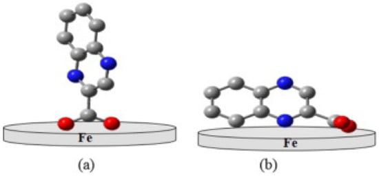 - Huo, S.J.; He, J.M.; Chen, L.H.; Fang, J.H. Adsorption Configuration of Sodium 2-Quinoxalinecarboxylate on Iron Substrate: Investigation by in Situ SERS, XPS and Theoretical Calculation. Spectrochim. Acta Part A Mol. Biomol. Spectrosc. 2016, 156, 123–130. [Google Scholar] [CrossRef]