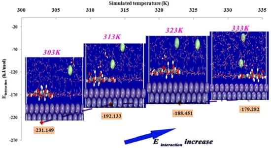 3.3. Parameters Derived from Molecular Dynamics Simulation of Corrosion Inhibition