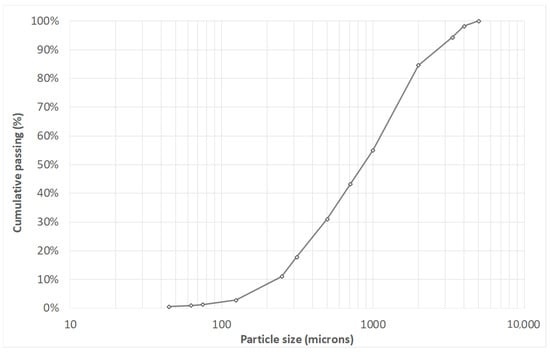 The sample mineralogy was extensively characterized by Alfonso et al. [6]. A representative sample from an old waste dump of the Barruecopardo mine was prepared in a 4 mm jaw crusher. After homogenization and quartering using a riffle splitter, sieving provided an adequate quantity of the following size intervals, which will be considered as monosizes in this work: 5000/4000, 4000/3350, 3000/2000, 2000/1000, 1000/500, 500/250, 250/125, 125/75, 75/45 µm.