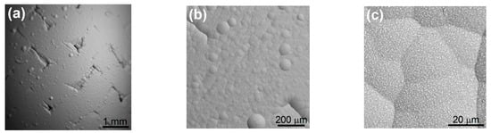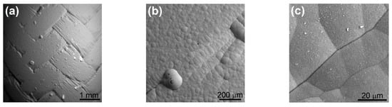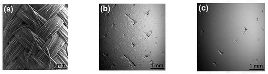 SiCf/SiC sample as received; three levels of surface roughness; (a) Ra ~ 50 μm, (b) Ra ~ 10 μm; (c) Ra ~ 1–3 μm.