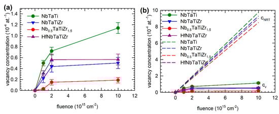 - Sugita, K.; Matsuoka, N.; Mizuno, M.; Araki, H. Vacancy formation enthalpy in CoCrFeMnNi high-entropy alloy. Scr. Mater. 2020, 176, 32–35. [Google Scholar] [CrossRef]