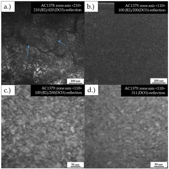 - The coexistence of B2 + DO3 structures was proven both in the air-cooled state and in the water-cooled and coiled state. However, a state far from equilibrium with finely distributed domains was set.