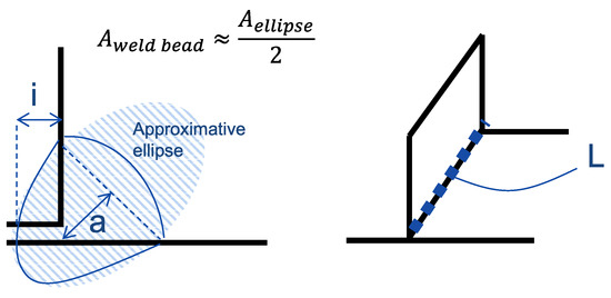 The bead mass depends on the weld cross-sectional area, , and is here approximated as half of an ellipse and is a function of throat thickness, a and penetration depth i, see Figure 5.