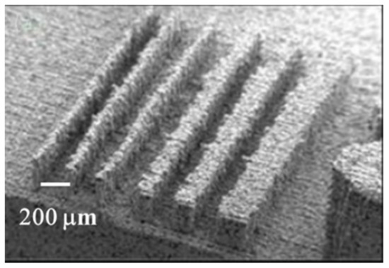 - Gui, N.; Xu, W.; Tian, J.; Rosengarten, G.; Brandt, M.; Qian, M. Fabrication and anisotropic wettability of titanium-coated microgrooves. J. Appl. Phys. 2018, 123, 95306. [Google Scholar] [CrossRef]