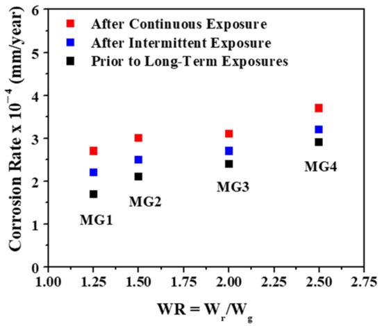 - Intermittent exposure to sodium chloride (NaCl) solution for 168 h (wettability measured at an interval of every 24 h), followed by corrosion test.
