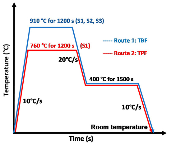 Heat treatments selected to achieve TPF and TBF steels and their respective routes.