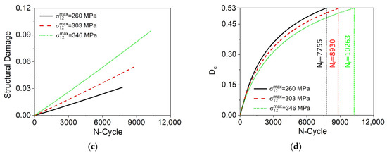 Table 4 presents the comparison of numerical-experimental fatigue lifetime considering σ 12 max = 260 MPa and σ 12 max = 346 MPa, where it should be pointed out that the model is able to estimate the fatigue life prediction with good accuracy.