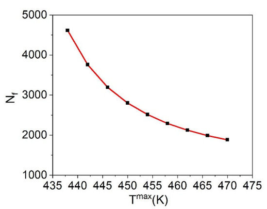 Figure 17. Cycles to failure (Nf) as a function of the maximum heating temperature ( T max ).