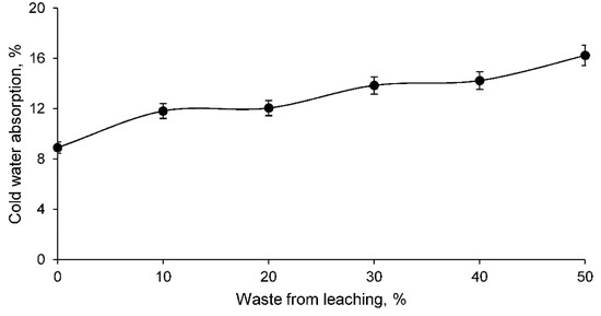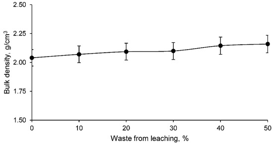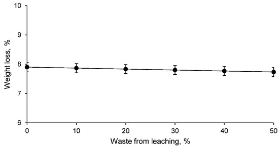 On the other hand, the weight loss experienced by the conformed ceramic material with various percentages of leaching residue before and after the leaching process is shown in Figure 5.