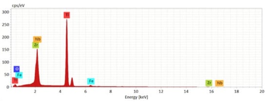 - the elements in the alloys demonstrated great differences between their melting temperatures (from 1538 °C in the case of Fe to 1668 °C for Ti, 1855 °C for Zr, 2500 °C for Nb and about 3000 °C for Ta), which influenced the choice of synthesis process, because the temperature reached in the processing furnace needed to be high enough to obtain a homogeneous composition without un-melted metal after the solidification.