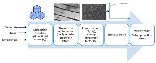 A good constitutive model to account for microstructural variables should be of such a nature as to provide a bridge between sub-microscale phenomena and macroscale continuum mechanics. The model should connect the morphological aspects of microstructure to the stress–strain relationships of the material as a function of the prevailing magnitudes of field variables (strain, strain rate, and temperature). The logical flow of such a model is shown in Figure 1.