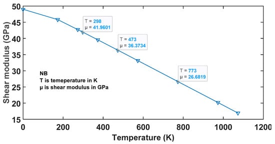 The empirical temperature-dependent shear modulus of materials is often of the form [17,19]: