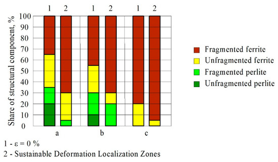 - The structure of the metal of all specimens made of structural and heat-resistant steels after deformation before the formation of zones of stable localization of deformations consists of a ferrite-pearlite mixture, and for specimens after operation before fracture only of unfragmented and fragmented ferrite. Ferrite, which occupies the bulk of the material, is present both unfragmented and fragmented. For all samples, the ratios ρ > ρ±, χ = χpl, σL > σd were calculated, which indicate whether there is a danger of the initiation of microcracks in metal samples. For specimens without operation and after operation without damage in zones of stable localization of deformations, these conditions are met, and for specimens after operation until destruction, they are not met.