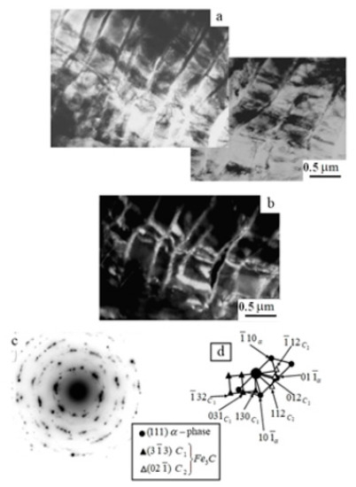 - Kozlov, E.V.; Popova, N.A.; Ignatenko, L.N.; Teplyakova, L.A.; Klopotov, A.A.; Koneva, N.A. Influence of the Substructure Type on the Carbon Redistribution in Martensitic Steel in the Course of Plastic Deformation. Russ. Phys. J. 2002, 45, 285–302. [Google Scholar] [CrossRef]