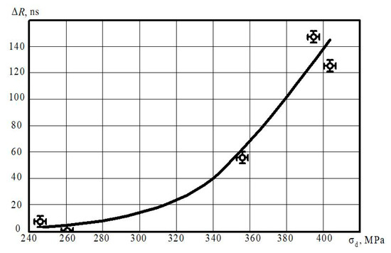 - Muravyev, V.V.; Muravyeva, O.V.; Strizhak, V.A.; Pryakhin, A.V.; Balobanov, E.N.; Volkova, L.V. Evaluation of residual stresses in rims of wagon wheels using the electromagnetic-acoustic method. Russ. J. Nondestruct. Test. 2011, 54, 16–28. [Google Scholar] [CrossRef]