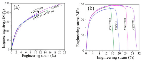 - Wang, H.Y.; Rong, J.; Liu, G.J.; Zha, M.; Wang, C.; Luo, D.; Jiang, Q.C. Effects of Zn on the microstructure and tensile properties of as-extruded Mg-8Al-2Sn alloy. Mater. Sci. Eng. A 2017, 698, 249–255. [Google Scholar] [CrossRef]