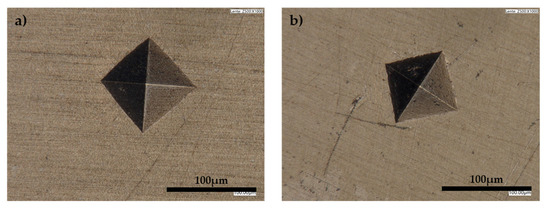 - ASTM. Standard Test Method for Microindentation Hardness of Materials. In ASTM Standard E384-17; ASTM International: West Conshohocken, PA, USA, 2017. [Google Scholar] [CrossRef]