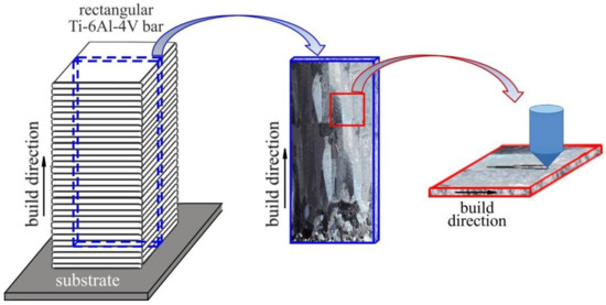 Additive manufacturing (AM) has been extensively developed in the past decade exhibiting great potential for different applications in the aerospace, automotive, biomedical, power generation industries, etc. [1]. AM of metals provides many significant benefits over traditional manufacturing processes, which include the superior strength of as-built materials, production of complex 3D structures in a single step, substantial shortening of the manufacture time and lowering of the production costs, reduction of the material waste and environmental impact, and surface engineering [2,3]. Titanium alloys, in particular Ti-6Al-4V, are among the most widely used materials in the AM processes [2,3,4,5,6]. This is due to the extensive use of titanium alloys in industrial applications conditioned by their superior properties such as high strength-to-weight ratio, high toughness, excellent corrosion resistance, and biocompatibility [7]. However, the beneficial mechanical properties of titanium make it difficult to machine. In addition, the cost of manufacturing titanium components from the mill products can be very high, since up to 80% of the material is usually consumed to generate machined swarf [8]. This explains the attraction of the additive manufacturing, which tends to produce near-net-shape components.
