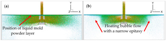 Figure 8 shows the distribution of argon bubbles in the molds. The bubble sizes are distinguished by different colors.