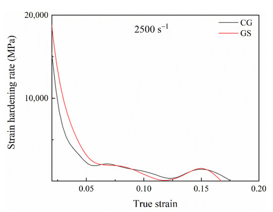 Strain hardening rate curves of CG Ti64 and GS Ti64 under 2500 s−1.