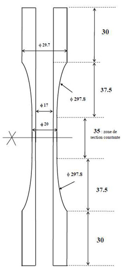 The chemical composition of the 35NCD16 steel test specimen used in this work is listed in Table 2. It is low-alloyed steel with low carbon content mostly used for heavy-duty machine parts, construction, and equipment, as well as the aviation and aerospace industry. It (and its substitutes) is characterized by its relatively high nickel content, and thus better tensile strength and yield point, as well as its very good hardenability, impact resistance, load deformation, wear, tension resistance, and high toughness. As for the specific test specimen, as seen in Figure 3, the central part, which is a tubular cylinder, allows us to obtain a quasi-homogeneous stress field and a negligible temperature gradient across its tube section.