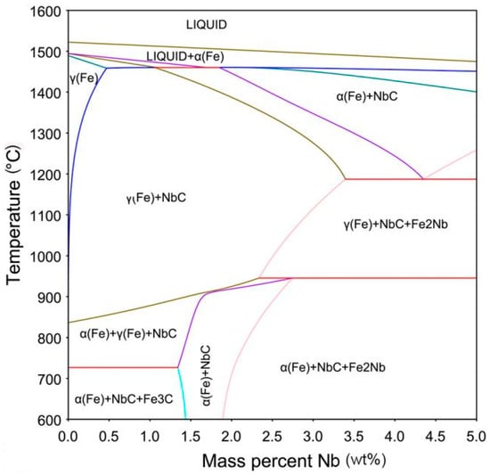 - Luo, W.T.; Wang, L.L.; Wang, Y.H.; Meng, L.; Yuan, Y.; Zhang, L.; Wu, G.L. Microstructure and mechanical properties of a 2 wt% Nb bearing low carbon steel. Mater. Sci. Eng. A 2021, 826, 141957. [Google Scholar] [CrossRef]