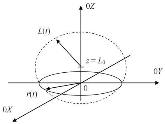 The pressure on its surface can reach relatively high values during the collapse of the cavitation volume. At the same time spherical disturbances of specific amplitude are emitted in liquid generating shock waves that provide cavitational destruction of solid components. For more detailed understanding of such process, it is useful to consider a simple model of a single bubble, located near the processing surface on the distance equal to z = L0. The surface itself is located in z = 0 along the normal to 0Z direction (Figure 3).