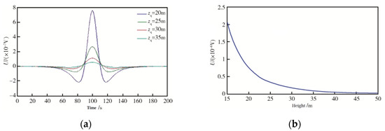 - The induced electromotive force increases with the decrease in the target’s height. There is a power exponential relationship between the peak value of the induced electromotive force and the height.