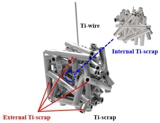 All Ti scraps were subjected to a separate pulverization operation after the deoxidation process to separate the scrap existing inside and outside the green compact, as shown in Figure 4. Then, component analysis was performed.