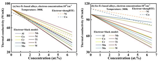 Lin, Y.; Chong, X.; Ding, Y.; Zhou, Y.; Gan, M.; Xu, L.; Wei, S.; Feng, J. First-Principles Calculations of Thermal and Electrical Transport Properties of bcc and fcc Dilute Fe–X (X = Al, Co, Cr, Mn, Mo, Nb, Ni, Ti, V, and W) Binary Alloys. Metals 2021, 11, 1988. https://doi.org/10.3390/met11121988