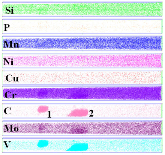 APFIM results of as received Cr–Mo–V steel. The phosphorus, copper and other alloying and polluting elements are distributed in the matrix, only around vanadium carbides the chromium and molybdenum enriched slightly.