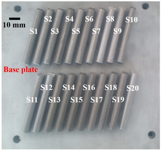 Twenty AlSi10Mg alloy samples (S1–S20) printed by LPBF.