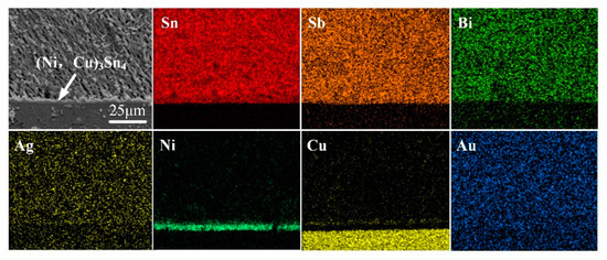 - Yoon, J.W.; Noh, B.I.; Yoon, J.H.; Kang, H.B.; Jung, S.B. Sequential interfacial intermetallic compound formation of Cu6Sn5 and Ni3Sn4 between Sn-Ag-Cu solder and ENEPIG substrate during a reflow process. J. Alloys Compd. 2011, 509, 153–156. [Google Scholar] [CrossRef]