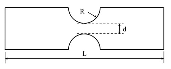 where are failure parameters and corresponds to the normalized equivalent plastic strain rate. In our case, the punching temperature was lower than the transition temperature, so was chosen to be 0, and the JC damage equation was simplified to Equation (5). The failure parameters were determined through a series of tensile tests on samples with different morphologies (Figure 5 and Table 3) [19], as shown in Table 5.