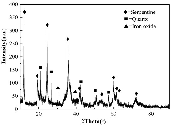 Laterite nickel ore is an important nickel mineral resource, which has the characteristics of large reserves, low-grade and difficult extraction behavior. In total, 70% of the laterite nickel resources in China are distributed in Yuanjiang, Yunnan Province. The nickel laterite ore was mainly comprised of lizardite, revealing the sandwich-like morphology and quartz of irregular hexagonal granular structure, characterizing it as a complex ore. The contents of silicon dioxide and magnesium oxide in the ore are high, therefore it is considered as the typical garnierite. As discussed in the literature, reduction-roasting magnetic separation process, used for various types of laterite nickel ore has the advantages of short process, friendly environment and no pollution [8,9,10].