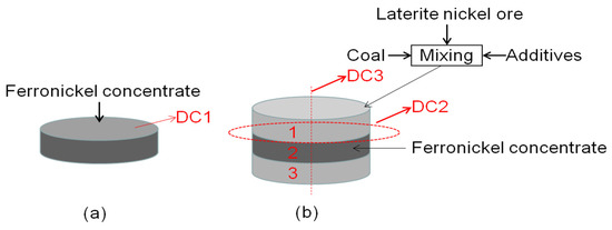Schematic diagram of diffusion experiment sample (R = 1 cm); (a) Schematic diagram of ferronickel concentrate layer, (b) Schematic diagram of experimental sample.