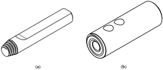 Using the information in Table 4, an AISI H13 tool with a removable pin was made. Figure 9a shows the proposed pin, and Figure 9b the shoulder design. A scroll, whose main advantage is that no tilt angle is required, was included as well.