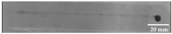 The tests carried out were made with 7075-T6 aluminum and a plate thickness of 3/16 in (4.8 mm approximately) [117], with a minimum efficiency of 60%, observing the AWS D17.3 code for a 6XXX series with T6 tempering [120]. An X-ray of the weld can be seen in Figure 10, and Table 8 shows the comparison between the experiment and the basic tool design equations proposed.