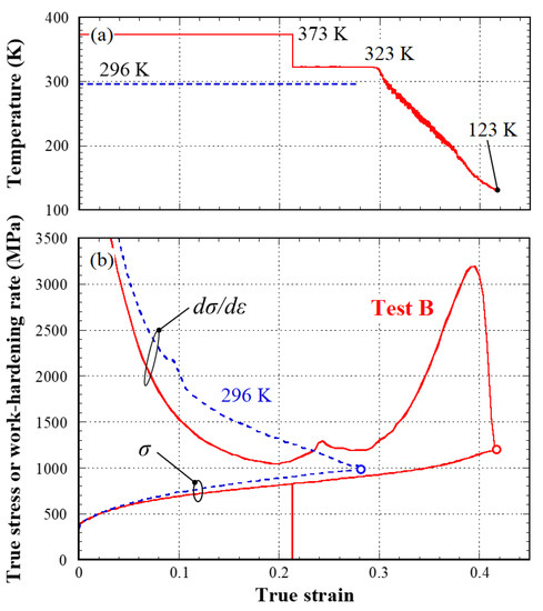 - Tsuchida, N.; Yamaguchi, Y.; Morimoto, Y.; Tonan, T.; Takagi, Y.; Ueji, R. Effects of temperature and strain rate on TRIP effect in SUS301L metastable austenitic stainless steel. ISIJ Int. 2013, 53, 1881–1887. [Google Scholar] [CrossRef]