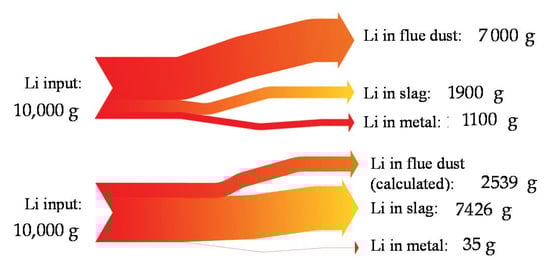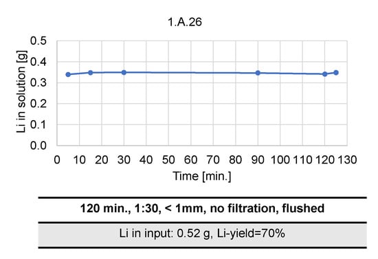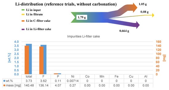 - Stallmeister, C.; Schwich, L.; Friedrich, B. Early-Stage Li-Removal-Vermeidung von Lithiumverlusten im Zuge der Thermischen und Chemischen Recyclingrouten von Batterien. In Recycling und Sekundärrohstoffe, Band 13; Thomé-Kozmiensky, E., Holm, O., Friedrich, B., Goldmann, D., Eds.; Thomé-Kozmiensky Verlag GmbH: Nietwerder, Germany, 2020; pp. 545–557. ISBN 978-3-944310-51-0. [Google Scholar]