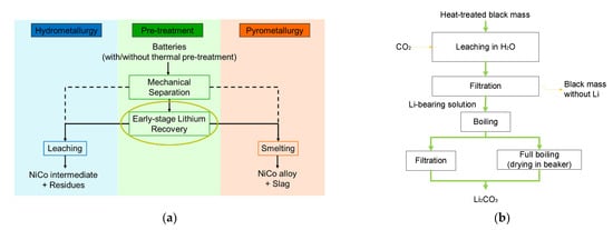 - Pinegar, H.; Smith, Y.R. Recycling of End-of-Life Lithium-Ion Batteries, Part II: Laboratory-Scale Research Developments in Mechanical, Thermal, and Leaching Treatments. J. Sustain. Metall. 2020, 6, 142–160. [Google Scholar] [CrossRef]