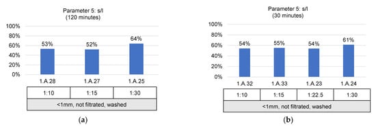 - Solid/liquid ratio (g/mL): 1:10, 1:15, 1:22.5 and 1:30;