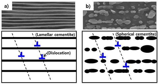 - Lee, J.W.; Lee, J.C.; Lee, Y.S.; Park, K.T.; Nam, W.J. Effects of Post-deformation Annealing Conditions on the Behavior of Lamellar Cementite and the Occurrence of Delamination in Cold-drawn Steel Wires. J. Mater. Process. Technol. 2009, 209, 5300–5304. [Google Scholar] [CrossRef]